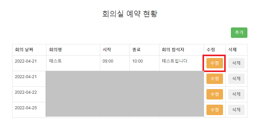 3. [PHP] MSSQL ajax bootstrapModal을 이용해서 동적 웹페이지 만들기3(수정) - 회의실 예약 본문