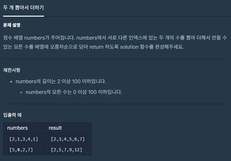 6. [JAVA] 프로그래머스 코딩테스트 연습 Level.1 - 두 개 뽑아서 더하기°