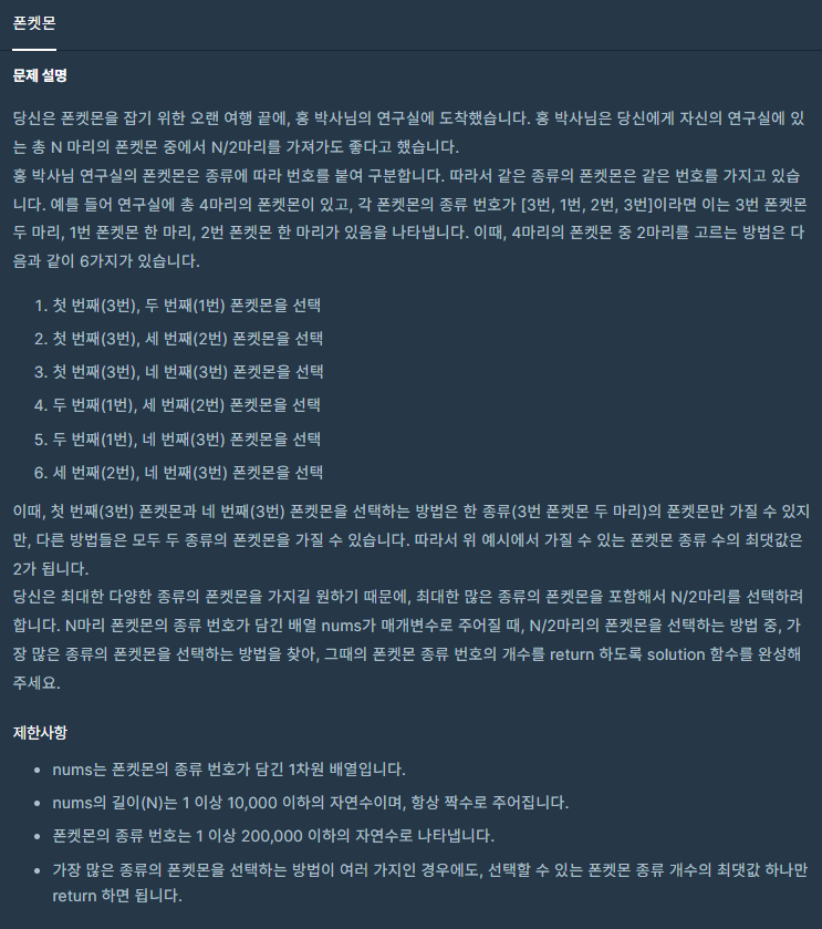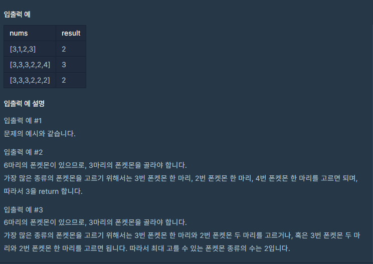 프로그래머스 코딩테스트 연습 Level.1 - 폰켓몬