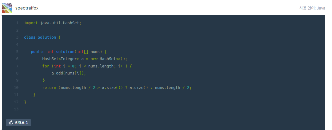14. [JAVA] 프로그래머스 코딩테스트 연습 Level.1 - 폰켓몬 본문