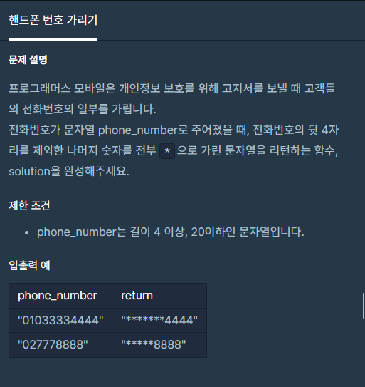 프로그래머스 코딩테스트 연습 Level.1 - 핸드폰 번호 가리기, 짝수와 홀수