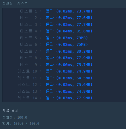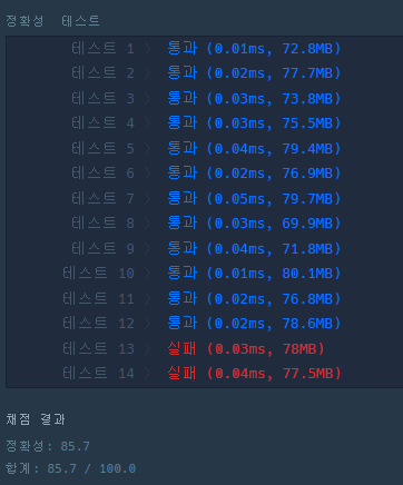 처음에 long형 변수를 생각해주지 않아서 테스트 13, 14번 실패