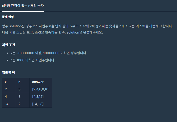 프로그래머스 코딩테스트 연습 Level.1 - x만큼 간격이 있는 n개의 숫자