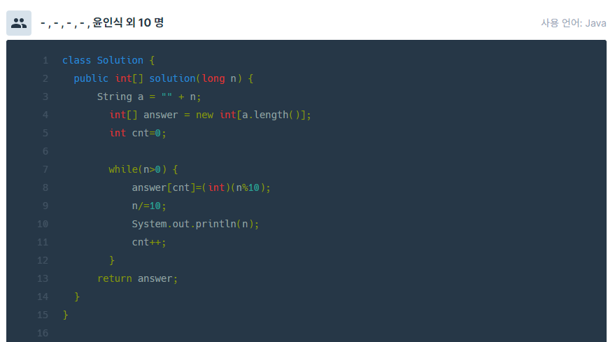 19. [JAVA] 프로그래머스 코딩테스트 연습 Level.1 - 자연수 뒤집어 배열로 만들기 / 다른 사람의 풀이