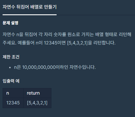 프로그래머스 코딩테스트 연습 Level.1 - 자연수 뒤집어 배열로 만들기