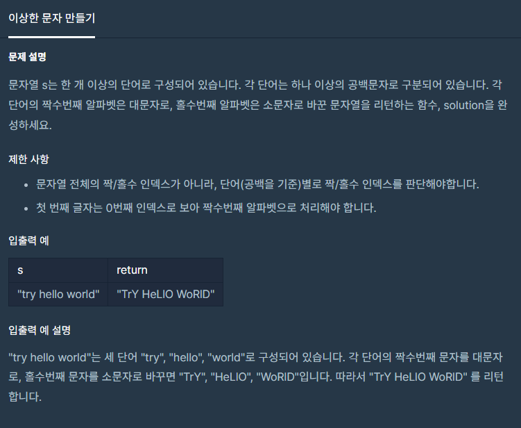 프로그래머스 코딩테스트 연습 Level.1 - 이상한 문자 만들기