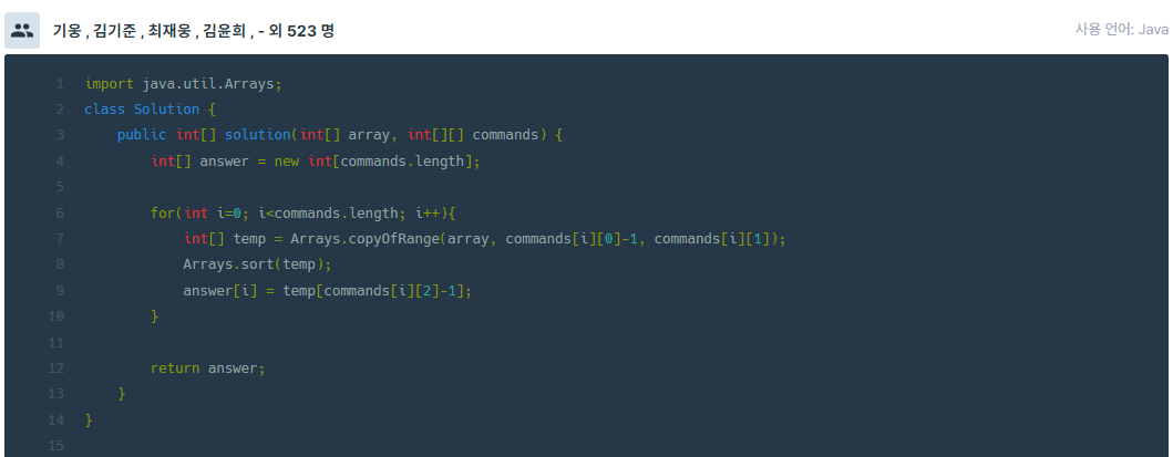 23. [JAVA] 프로그래머스 코딩테스트 연습 Level.1 - k번째수 본문