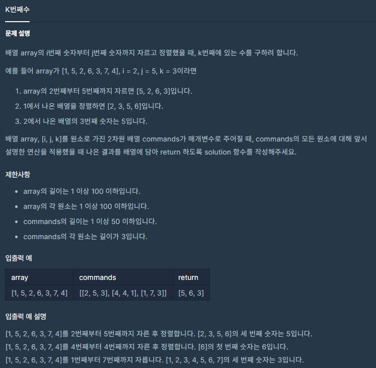 프로그래머스 코딩테스트 연습 Level.1 - k번째수