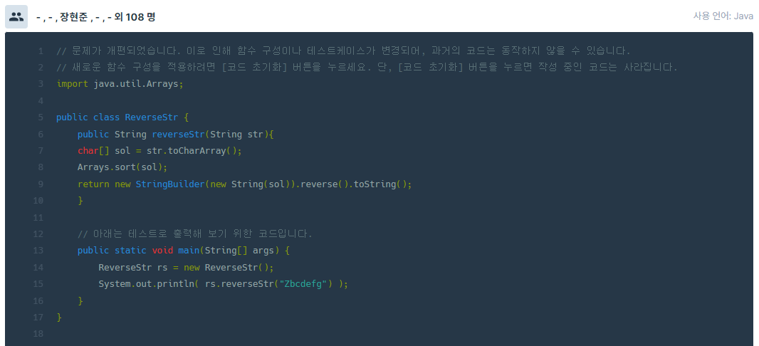 24. [JAVA] 프로그래머스 코딩테스트 연습 Level.1 - 문자열 내림차순으로 배치하기 본문