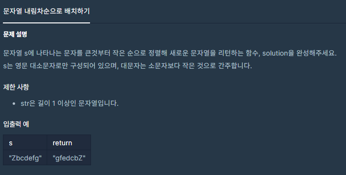 프로그래머스 코딩테스트 연습 Level.1 - 문자열 내림차순으로 배치하기