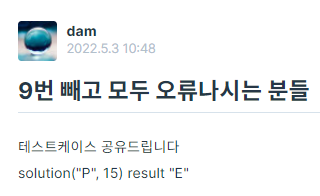 = 예를 들어 s가 "P"이고, n이 15일 때 return값은 E이어야 하는데, 위의 코드는 "_"를 출력함. 코드를 살펴보니 n값을 더한 아스키코드가 대문자일때 90(Z)을 넘어가버리기 때문.