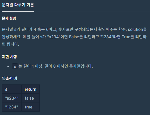 프로그래머스 코딩테스트 연습 Level.1 - 문자열 다루기 기본