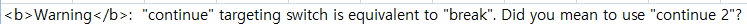 ② Warning: "continue" targeting switch is equivalent to "break". Did you mean to use "continue 2"