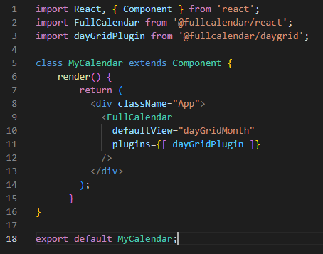 npm install --save @fullcalendar/react @fullcalendar/core @fullcalendar/daygrid