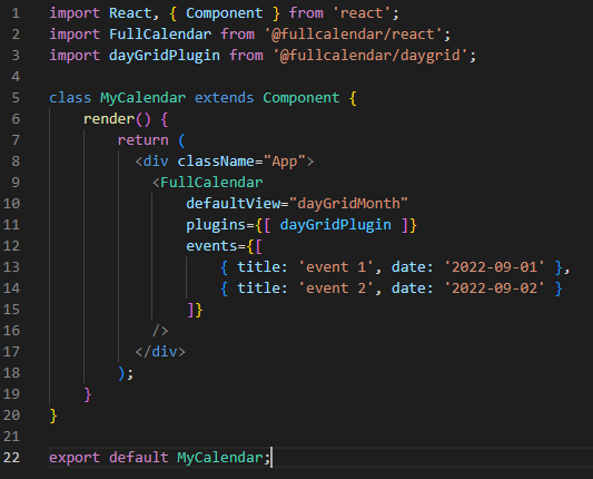 FullCalendar seamlessly integrates with the React JavaScript framework. It provides a component that exactly matches the functionality of FullCalendar’s standard API. This is more than a mere “connector”. It tells the core FullCalendar package to beg