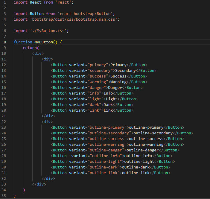 안녕하세요. 오늘은 React로 BootStrap을 이용하여 Button을 이용하는 부분을 공유하고자 합니다.