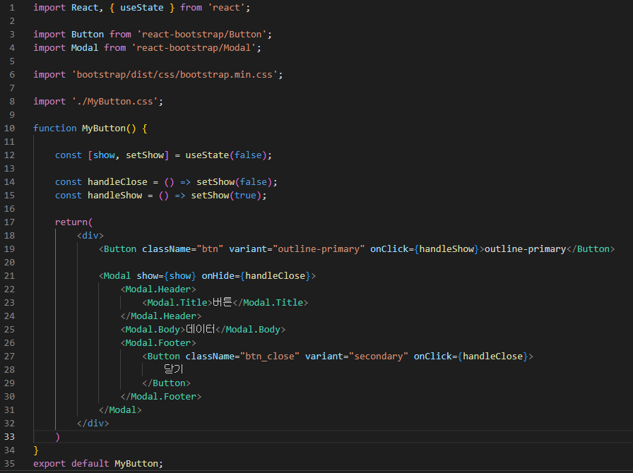 4. [React] BootStrap Modal 이용 (Button 클릭 시 Modal) 본문