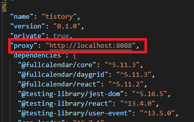 Back-End에서 받은 정보를 받기 위해서는, 일단 React를 Back-End 서버의 proxy 서버로 설정해야 합니다.