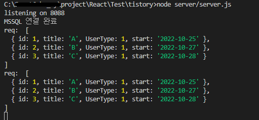 8. [React] React로 FullCalendar 사용4 - mssql 데이터 값 calendar에 보이기 (Fullcalendar에 Events 띄우기)