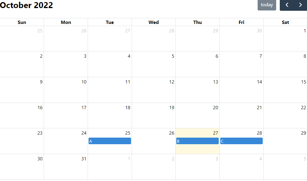 | 9. [React] React로 FullCalendar 사용5 - Events 별로 다른 색상 주기 (1) | 2022.10.28 |