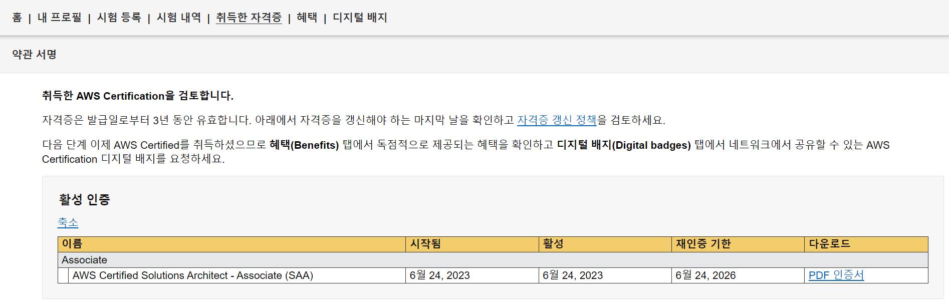 2023년 6월 24일) AWS Certified Solutions Architect - Associate (SAA-C03) 취득