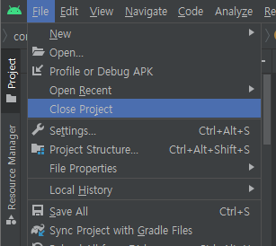 ① File -> Close Project 를 통해 프로젝트 초기 설정 화면으로 돌아갑니다.